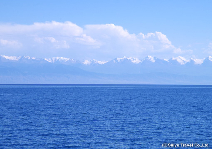 「天山の真珠」と言われたイシク・クル湖。古来より中国と中央アジアを結ぶシルクロードを隔て、玄奘三蔵もベテル峠を越えて、ここに到達しました。美しい天山の景観が広がります。
