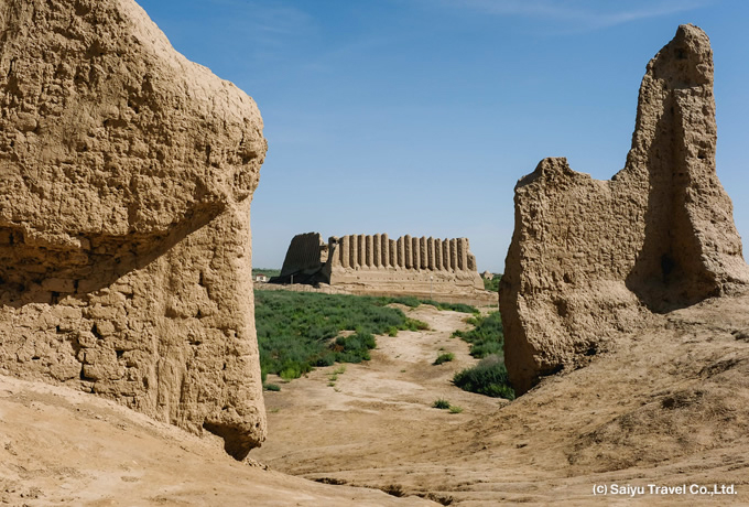 城壁址・大キズカラが残る中央アジア最大の遺跡メルブ。シルクロードの要衝で、当時の国際都市としての繁栄を誇ったこの街には、アケメネス朝からティムール朝までの中央アジアの歴史が刻まれています。