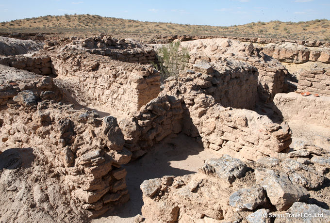 専用車に分乗しマルグッシュに残るトゴルク21号へ。着後、神殿跡、拝火壇跡を見学。その後、マリへ戻ります。途中、ネストリウス派キリスト教会跡、中央アジア最大の遺跡メルブを見学。 マリ泊