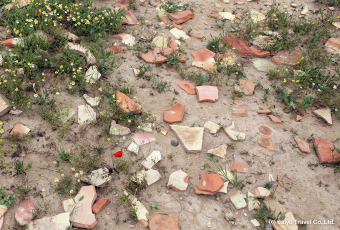遺跡に点在する陶器片COLUMN カラ・クム砂漠に残る巨大神殿跡 トゴルク21号