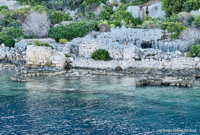 朝、ボートにてケコヴァ島に近づき、船上より水中都市をご覧いただきます。その後、漁村カシュに残るリュキア時代の岩窟墓を見学。その後、カルカンへ。