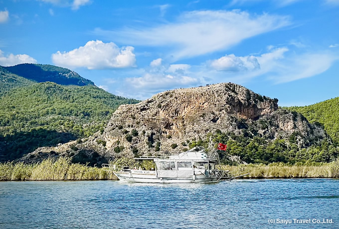 ケコヴァ島とダルヤンで2回のボートクルーズ。ケコヴァ島では地震で沈んだ水中遺跡を、ダルヤンでは水上から岩窟墓を見学します。