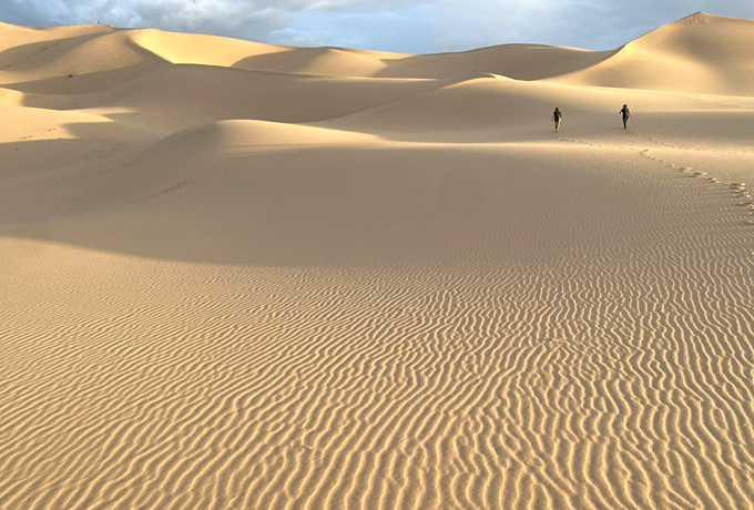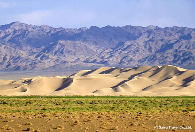 朝、ツァガーン・スワルガのホワイト・ストゥーパ(白い仏塔)と称される、白や赤の層がおりなす壮麗な石灰岩の台地の絶景をお楽しみください。その後、ホンゴル砂丘のキャンプへ。途中、鷲の谷・ヨリーンアムにて、砂漠の中の渓谷のハイキングをお楽しみいただきます。 ホンゴル砂丘周辺:ツーリストキャンプ泊 |