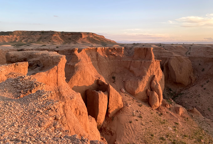 終日、南ゴビ最深部ヘルメンツァブを散策。グランドキャニオンを彷彿とさせる断崖や奇岩の絶景をお楽しみください。