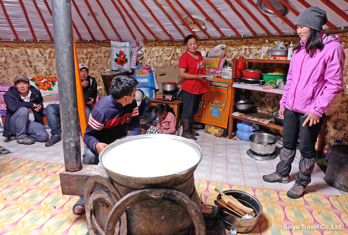 カザフ族の遊牧民の伝統的な暮らしを体験。スーティ・ツァイというお茶、馬乳やヤク乳で作られたお酒などをお試しいただいたり、伝統楽器による演奏もお楽しみいただきます。