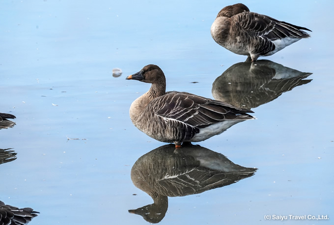 | 日程について | 野鳥の観察や撮影を目的とするツアーです。天候や鳥の観察状況により柔軟に観光内容を変更することがあります。例年、この時期は八郎潟周辺、伊豆沼・蕪栗沼周辺に十万羽ものガン類がやってくる季節ですが、年によって時期がずれたり、個体数が少ないという可能性があります。日程表に記載の野鳥は必ずしも観察できるとは限りません。 |