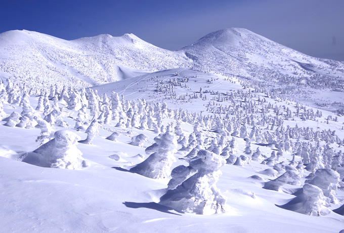 冬の東北、一度は見てみたい樹氷は世界でも珍しい冬の風物詩。冬の天気を考慮して何度か訪ねるチャンスを作り、さまざまな表情のタイミングを狙います。