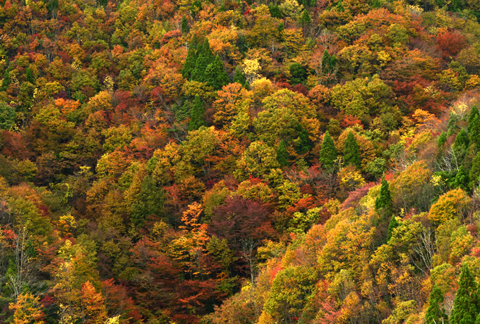 倒木と紅葉の木々COLUMN 日本の原風景 かやぶきの里