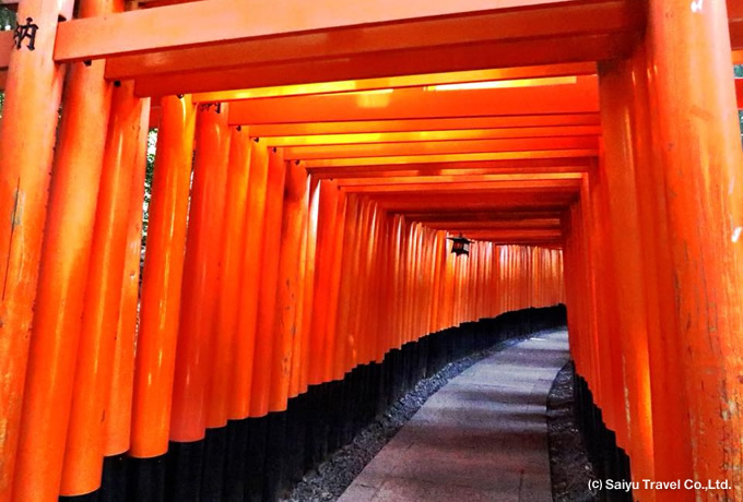 JR京都駅に集合(11:00)。ホテルに荷物を預けてから電車にて伏見桃山へ。 ●トレッキング 東山コース(1)伏見・深草ルート 伏見桃山~伏見稲荷 (約5時間) 京阪伏見桃山駅(標高24m)よりトレッキング開始。伏見桃山城、大岩山展望所(166m)、稲荷奥社を経て、伏見稲荷大社へ。初日はここまで。電車にて京都駅へ戻ります。 京都駅泊|食事:朝× 昼× 夜× |