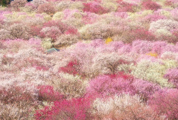 東海地区最大規模の梅林公園があるいなべ市農業公園。公園の敷地に100種類・4000本以上の梅が咲き、広大な鈴鹿山脈を背景に梅の花をご覧いただけます。見晴らし台から眼下に広がる梅林の風景はまるでじゅうたんを敷き詰めたような風景が広がります。