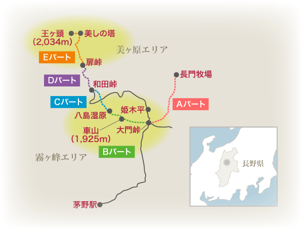 ポイント 百名山にも選ばれた、美ヶ原と霧ヶ峰も登頂