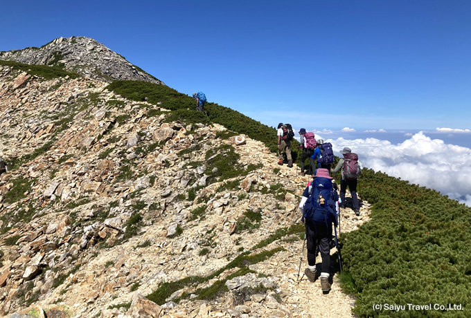 参加者一人一人にガイドの目が届く少人数限定企画。熟達した登山ガイドと西遊旅行の山専門の添乗員の2名体制で最大10名様のグループをしっかりサポートします。
