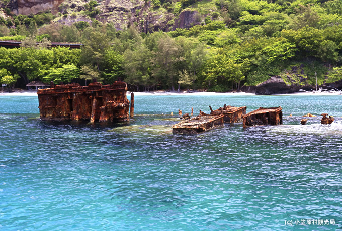 午前中、チャーターボートで沈水カルストの絶景・南島へ。上陸してハイキングをお楽しみいただきます。運が良ければイルカ、ザトウクジラに出会うことも。午後は、父島の森に残る地下壕や砲台などの戦跡を巡ります。境浦海岸では、岸からすぐ目の前に沈む貨物船「濱江丸」を望むことができます。 ※天候によっては、午後にチャーターボートでのご案内に変更する場合があります。 父島|食事:朝○ 昼× 夜○