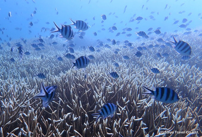 | 日程について | シュノーケリングのポイントは、風や海況によってガイドが選定いたします。日程表中に記載のポイントで実施できない場合や掲載の魚が見られないこともあります。予めご了承ください。 |