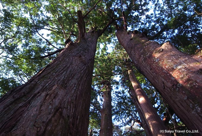 ●熊野古道トレッキング(約8時間) 苔むした石段の道や杉林の中を歩き野中の清水へ。継桜王子では樹齢800年を越すといわれる巨木もご覧いただけます。さらに小広峠へ。夕方、専用車にて高原霧の里に戻ります。 高原霧の里:民宿・霧の郷たかはら泊 |