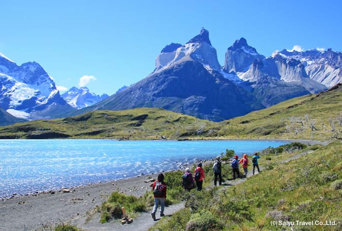 | 7 | パイネ国立公園 | 終日、パイネ国立公園の観光。眼前に雄大な氷河をご覧いただくことができるグレイ氷河展望クルーズをお楽しみください。また、サルト・グランデ(パイネ大滝)、ノルデンフェールド湖畔のクエルノス・デル・パイネ展望ハイキング(往復約2時間半)にもご案内します。