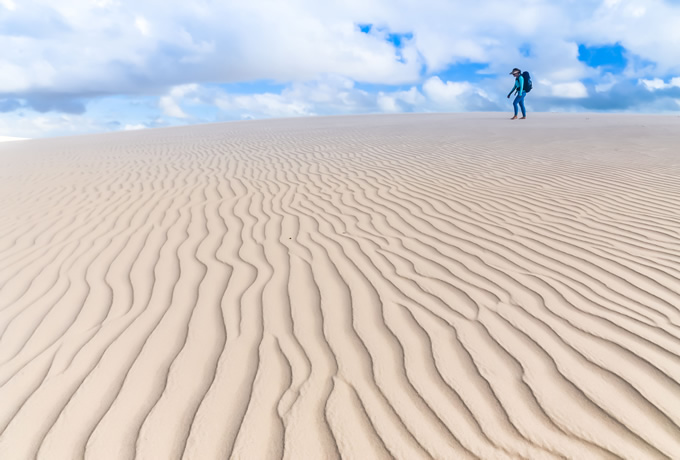 ブラジルの二大景勝地レンソイスとイグアスの滝を満喫する一歩踏み込んだ旅。2泊3日のレンソイス縦断ハイキングでは、すれ違う観光客のいない大砂丘の光景を独り占め!