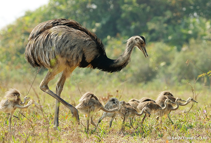 専用車にて、パンタナール縦貫道路を南下し、世界遺産パンタナール湿原の風景をお楽しみいただきます。南米固有種で世界最大のげっ歯類カピバラやパラグアイカイマン(ワニ)などの野生動物や、ズグロハゲコウ、カワセミ、レンカクなどの野鳥の観察をします。オオアリクイに出会うこともあります。