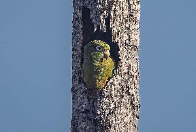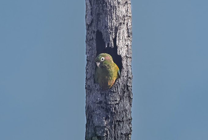 午前、荒涼としたロス・フラメンコス保護区と周辺の乾燥地帯でバードウォッチング。この地域ではミナミショウジョウコウカンチョウに出会うチャンスがあります。色鮮やなオレンジの羽毛を持つこの鳥は旅のハイライトとなるはずです。他にもホオグロイカル、クリイロヒメキツツキ、ヒメオリーブシトド、シロヒゲカマドドリ、ミズベハチドリ、テリルリハシインコなどを探します。この地を象徴するマミジロイシチドリも是非観察したい野鳥のひとつです。午後、ミンカへと戻ります。