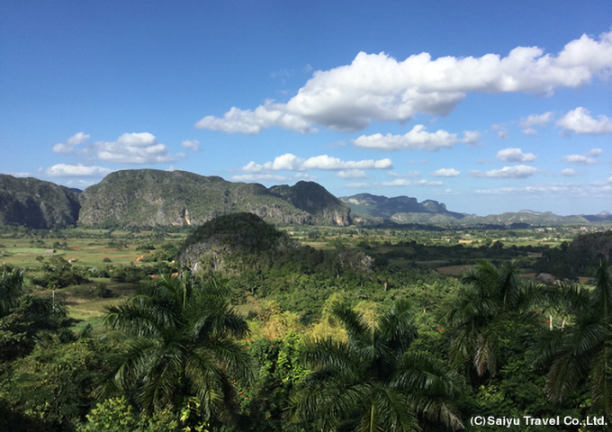 石灰岩が浸食されてできたカルスト地形の残るビニャーレス渓谷は、オルガノス山脈の豊かな自然美と土着の建築や伝統が見事に融合した場所として世界遺産に登録されました。ハバナから日帰りで訪れ、ハスミネス展望台からは緑豊かな渓谷の風景をお楽しみください。その昔、先住民が暮らしたインディヘナの洞窟では地下水脈でのボートクルーズで美しい鍾乳石を鑑賞。その他、高さ20m、幅120mの巨大なムラル壁画やたばこ農園も見学します。