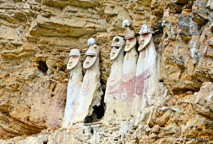 雲上の民チャチャポヤスが築いた天空の都クエラップや断崖墓群。秘境に残る壮大な遺構が、アンデス文明の奥深さを伝えます。