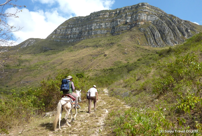 朝食後、ワンカス村郊外のソンチェ渓谷の展望を楽しんだあと、チャチャポヤスの市場を見学。その後、クルス・パタへ移動し、馬に乗って丘を下り、断崖に立つカラヒアの棺を見学します。その後、チャチャポヤスに戻ります。 チャチャポヤス泊