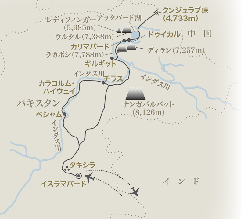 | 日程について | 行程のほとんどが山岳地帯の移動となります。カラコルムハイウェイは以前に比べると快適になりましたが、ベシャム~チラス間のダム工事の影響や不測の大雨などの後には一時的に通行不能になることがあります。移動に予想以上の時間がかかることもあり、万が一がけ崩れなどにより車の通行が不能になった場合、大きく日程変更が必要となることがあります。予め、山岳地帯のご旅行であることをご理解の上ご参加ください。 ※5月は積雪の影響で峠まで訪れることができない場合があります。予めご了承ください。 |