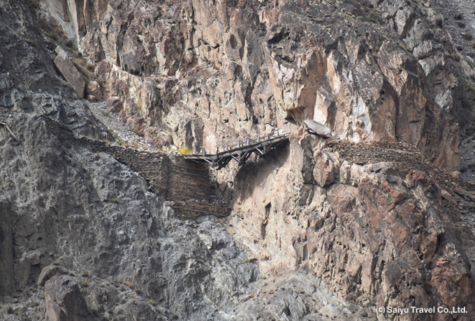 朝、インダス河岸を歩き、古代シルクロードを旅した商人や巡礼者たちが描いたチラスの岩絵を見学します。あと数年でインダス川に完成するダムに水没する、失われゆく遺産です。その後、専用車にてインダス川沿いにカラコルムハイウェイを北上し、桃源郷フンザの好展望地ドゥイカルを目指します。道中、天気が良ければ、世界第9位峰のナンガパルバット(8,126m)の展望をお楽しみいただけます。