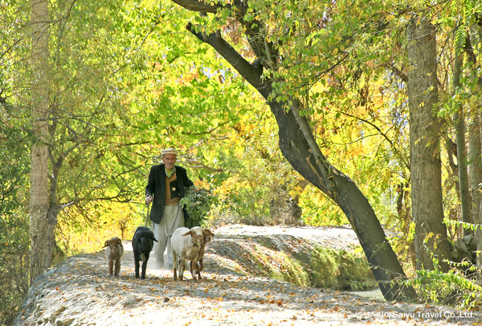 フンザは1974年まで藩王国として独立していた地域の名称で、現在の中心地はカリマバード。雪を頂くウルタル、ラカポシ、ディランなどの名峰、谷中に広がるポプラの木が日差しを浴びて黄金色に輝く美しい谷です。黄葉の色づき具合によって、フンザから標高の高いドゥイカルの丘、上部フンザと、場所を変えて撮影を楽しめます。