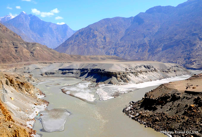 一路、カラコルムハイウェイを南下してチラスへ。途中、ヒマラヤ山脈、カラコルム山脈、ヒンドゥークシュ山脈が一点に集まる三大山脈の合流ポイントにも立ち寄ります。