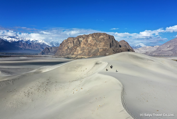 終日、高山に囲まれた砂丘サルファランガ寒冷地砂漠を訪問。その後、インダス渓谷を望むフサイナバードの展望地、スカルドゥの市場、マンタル摩崖仏を見学し、インダス川を渡りシガール渓谷へと戻ります。