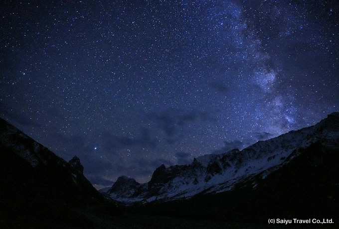 宿の設備がない地域のため、景色の良いポイントにテントを設営します。西遊旅行パキスタン支店「インダスキャラバン」のキャンプチームがテントやダイニングを設営。同行のコックが食べやすいお食事をご用意いたします。また、発電機を持参しますので、ダイニングには灯りがあり、カメラやスマホの充電も可能です。