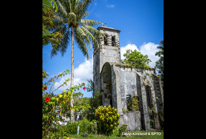 グアム着後、航空機を乗り換えてチューク諸島経由でミクロネシア連邦のポンペイ島(旧ポナペ島)へ。着後、専用バスにてポンペイ島の中心地であるコロニア地区の観光(カトリック教会、日本人墓地、スペイン砦、ドイツ鐘楼、市場等)。夕食は新鮮なマングローブ蟹などのポナペ名物料理をご賞味ください。