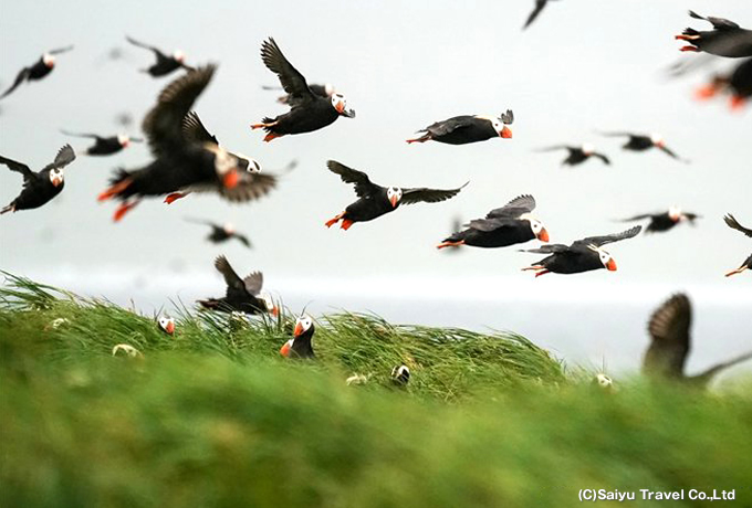 | 5 | ベーリング島 | 朝、コマンドルスキー諸島ベーリング島の村ニコルスコエを訪問します。ベーリングの記念碑、希少なステラーカイギュウの骨格を展示した博物館などを訪問します。その後、10万羽のエトピリカなどの海鳥の繁殖地トポルコフ島に上陸。