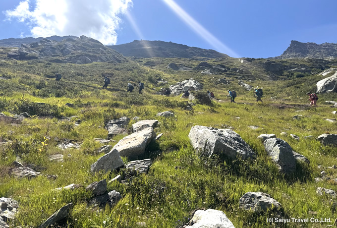 | 荷物 | スーツケースではなく、予めダッフルバッグ(12~13kg程度に抑えてください)等のカバンでご参加ください。ただし、毎日荷物車が回送します。日程5日目の宿泊への1泊2日は、別途さらに小さなカバンをご用意ください(大きなダッフルバッグは持っていけません)。歩行時にご自身で背負うのは日帰りの荷物のみですので、デイパックでご参加が可能です。 | |