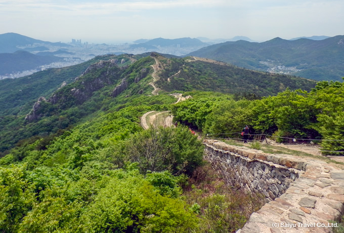 韓国南部に雄大に広がる智異山(チリサン)は、韓国で2番目に高い名峰であり、韓国初の国立公園としても知られています。最高峰の天王峰(1,915m)を中心に、なだらかな稜線と深い原生林が連なり、四季折々に表情を変える自然美が魅力です。古くから修行の山・信仰の山としても人々に敬われてきました。ツアーでは、智異山南麓の中山里から天王峰を日帰りで往復します。ポイント 釜山の山城・金井山