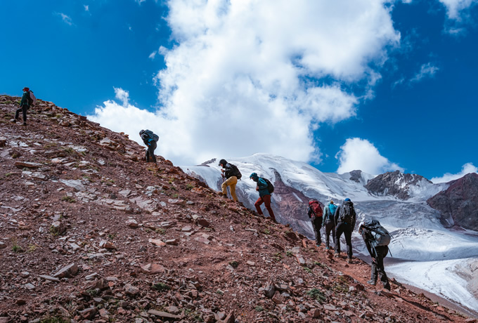 13日間というコンパクトな日程で、前哨戦としてアラ・アルチャ国立公園のウチチェリ・ピーク(4,530m)、そして、パミール・アライ山脈のユーヒン・ピーク(5,130m)に登頂します。それぞれのピークではレーニン峰北壁とアライ渓谷、アルアラチャ渓谷の景色をお楽しみいただけます。まだ日本では馴染みのないキルギスの山々に、ぜひ挑戦してみてください。