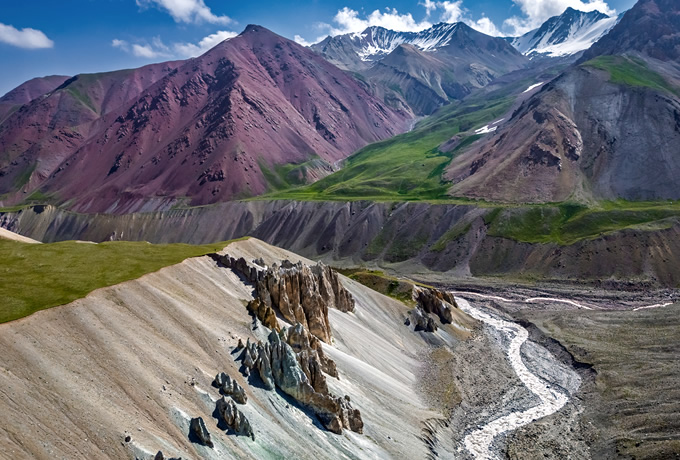●ウチチェリ・ピーク登頂 (約7時間:登り4時間/下り3時間) 早朝、山小屋を出発。山頂のウチチェリ(4,530m)に登頂。その後、山小屋へ戻ります。 ●下山(4時間) アラ・アルチャ国立公園まで下ります。着後、専用車にてビシュケクへ戻ります。 ビシュケク泊