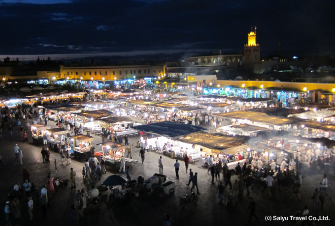 夜のジャマ・エル・フナ広場