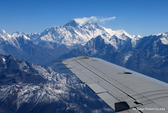 カトマンズより早朝ホテルを出発し空港へ。山岳フライトでヒマラヤの山々を空から眺め、エベレストの手前で旋回。ホテル/空港間の送迎は日本語ガイドがご案内。