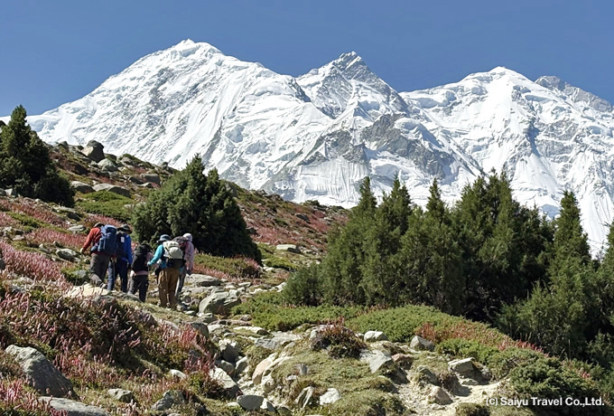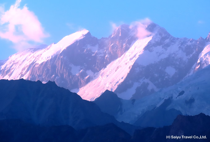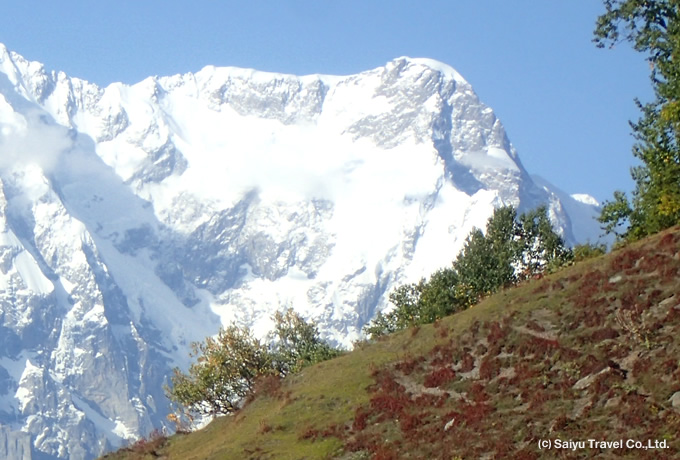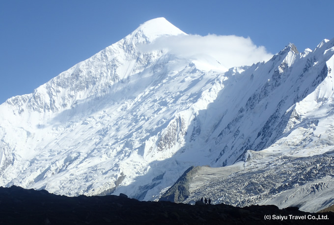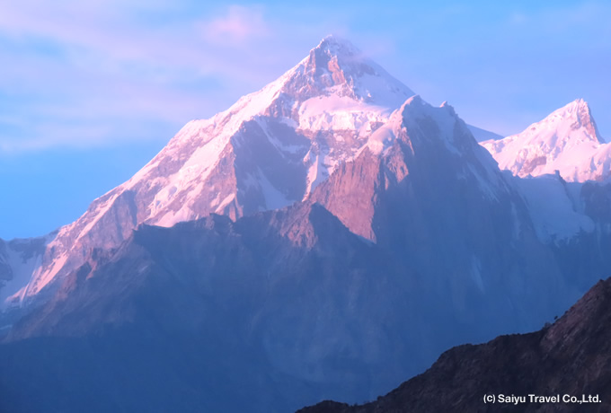北杜夫著『白きたおやかな峰』によって日本では良く知られた山で、トレッキング中はミナピン氷河越しに白銀の姿を表します。美しい三角形を描いた見事な山容は深く印象に残ることでしょう。