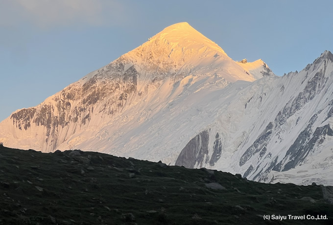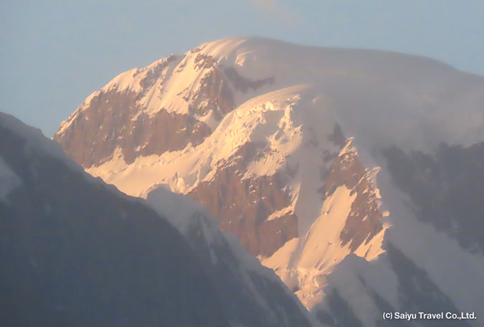シスパーレと同様にカラコルムハイウェイより、パスー氷河と合わせて望むことができます。本ツアーで見える姿はなだらかですが、別の角度でみると鋭い三角形のシルエットが特徴的です。