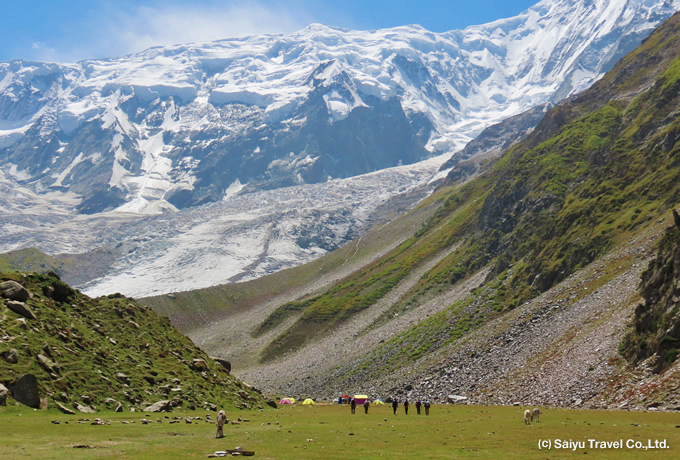 ナンガパルバット大氷壁に迫る ヘルマン・ブール・キャンプⅠトレッキング約3時間のトレッキングで訪れることが出来る人気のナンガパルバット展望地フェアリー・メドウ。通常ここから往復ハイキングをするのみですが、このコースでは更にキャンプⅠまで足を延ばし、眼前に世界第9位峰の大氷壁を望みます。