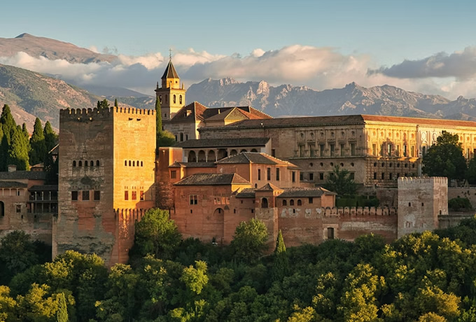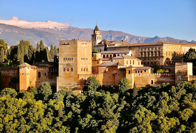 午前中、引き続きコルドバを観光。スペインで最も重要なイスラム建築物の一つであるメスキータとイスラム様式の城塞アルカサルを訪れます。その後、専用バスにてレコンキスタ終結の地グラナダへ。着後、エキゾチックなアラブの雰囲気漂う旧市街の散策をお楽しみください。夜、ご希望の方は、徒歩にてアルバイシン地区を訪れ、アルハンブラ宮殿のライトアップされた美しい姿をご覧いただけます。 グラナダ泊