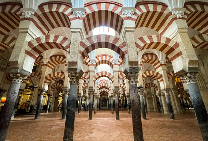 午前中、引き続きセビリアの市内観光。スペイン王室の宮殿であるアルカサル宮殿を訪問。荘厳で迫力あるセビリア大聖堂を訪れ、ヒラルダの塔からは町を見下ろすパノラマビューをお楽しみいただきます。その後、専用バスにてコルドバへ。道中、世界遺産であるイスラム王の離宮都市メディナ・アサーラを訪問。コルドバ着後、世界遺産の歴史地区を散策し、イスラム教とキリスト教、ユダヤ教が融合した魅惑的な雰囲気にふれます。 コルドバ泊