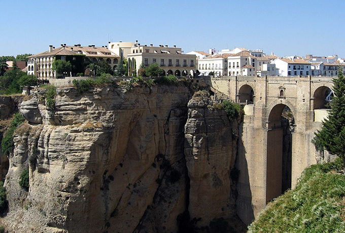 午前中、マラガにあるイスラム様式の宮殿要塞アルカサバ要塞と、ヒブラルファロ城を観光。その後、タホ渓谷の断崖の上に築かれた町ロンダへ。着後、ヌエボ橋、闘牛場、アラブ浴場跡などを観光します。 ロンダ泊