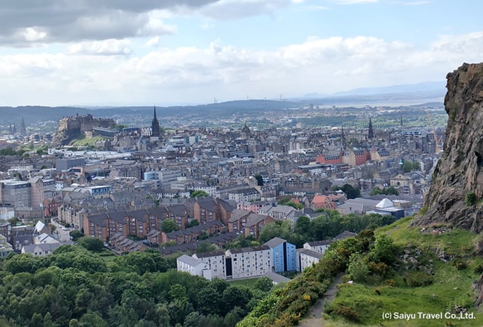 午前、ローマ帝国の国境線として築かれたハドリアヌス帝の城壁跡と、そのシンボル的な景観であるシカモア・ギャップを訪れます(約1時間)。 その後、スコットランドに入り、作家サー・ウォルター・スコットも愛した景観スコッツ・ビューで絶景のパノラマをご覧いただきます。 午後、スコットランドの首都エディンバラに到着。着後、約3億年前の火山活動で形成された火山丘アーサーズ・シートをハイキングし、街を一望する景色を楽しみます(約2時間)。