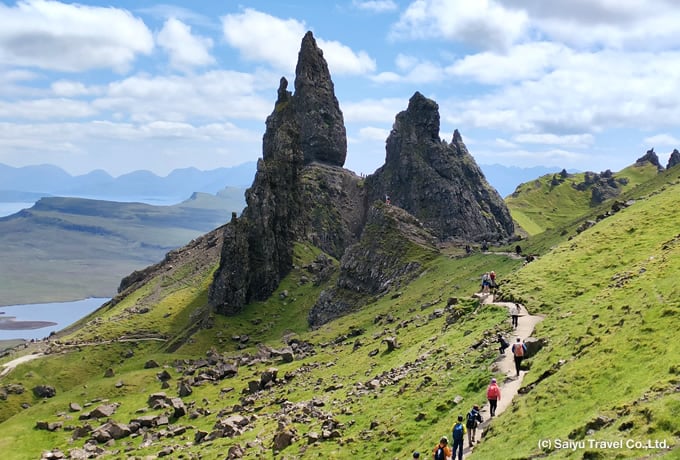 スコットランド随一の景観を誇る、スカイ島に2連泊。荷物を気にせず、時間をかけて島内を周遊できるのが最大のポイントです。オールドマン・オブ・ストールやフェアリー・グレンなど、非常にドラマチックな島の絶景を心ゆくまでショートハイキングで満喫します。