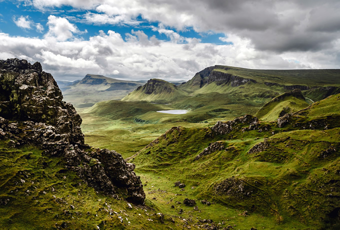 | 6 | スカイ島 | 終日、スカイ島の観光。午前は、島の象徴である岩の尖塔オールドマン・オブ・ストールをハイキング(約3時間)。 昼食後、まるで妖精が住むおとぎ話の世界のようなフェアリー・グレンを散策します(約30分~1時間)。 時間が許せば、古代の地滑りによって生まれた、奇岩と山の景観が美しいクイラングでショートトレイルまたは写真ストップを楽しみます。