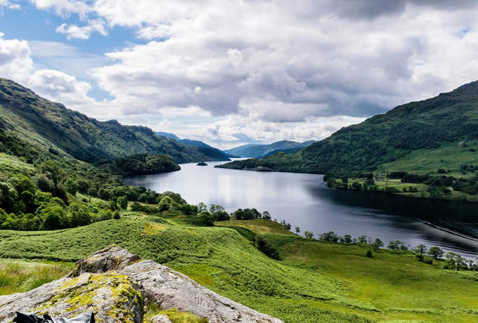 専用車で西海岸へ。ハイランドの入り口にある美しい湖ロッホ・ラブナイグに立ち寄ります。イギリス王室の夏の離宮であるバルモラル城の敷地内にある周囲を山に囲まれた湖の周りでのショートウォークでハイランドの自然を実感します。 西海岸の港町オーバンへ到着後、ホタテやブラウンクラブなど旬のシーフードの昼食をご賞味ください。 午後、フェリーでマル島へ。到着後、マル島のシンボルでマル海峡に突き出た岩の岬の上に堂々と建つデュアート城に立ち寄ります(外観)。その後、宿泊地のグレンフォーサへ。